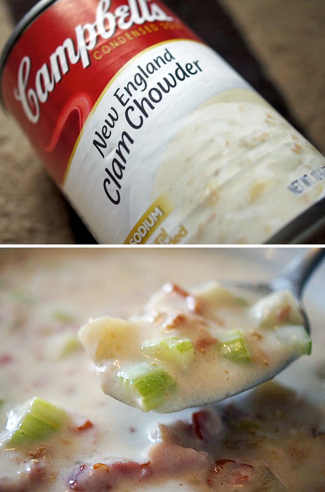 ベーコン、はまぐり、牛乳、バターと小麦粉で本当は作るニューイングランド風。