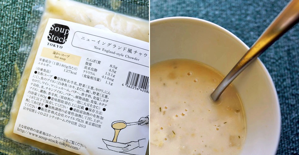 一緒にスープ…、スープストックトーキョーで売ってる冷凍クラムチャウダー。