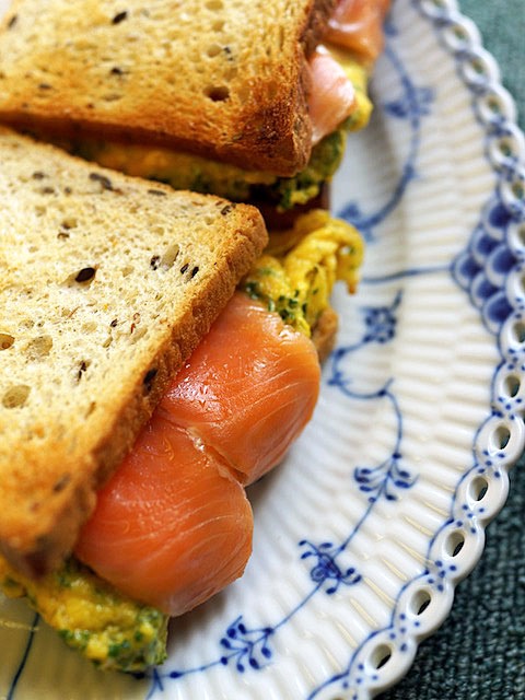 それからスモークサーモンのせて、パンで蓋してそのまま食べる。