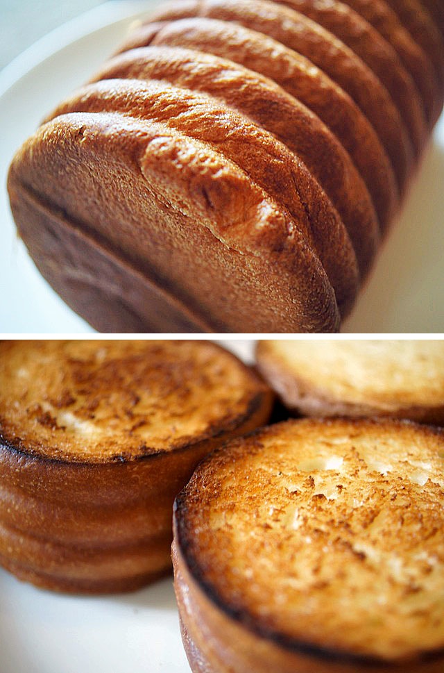 気泡のような穴が沢山あいているのは、含んだバターが溶けた証拠で食べてるうちにどんどん口の中がとろみを帯びてくる。