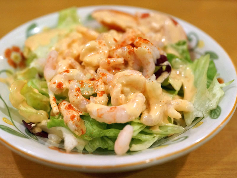 小エビのサラダをまず食べる。