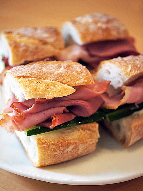ここのバゲットは生地の表面がソフトに焼けた、ちょっとフッカリした出来栄えでサンドイッチにするのに程よい。