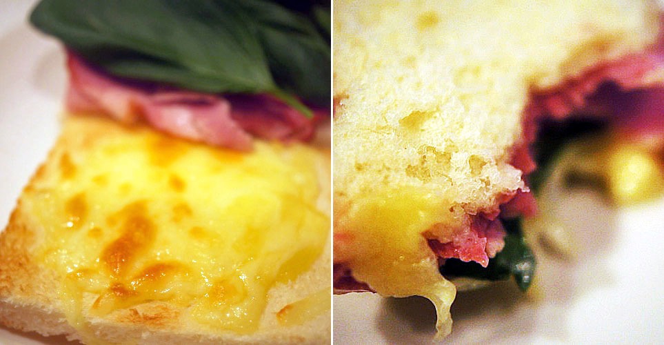 もう一枚にはハムをのせチーズがトロトロ、とろけて焦げ目がつくまで焼いた。