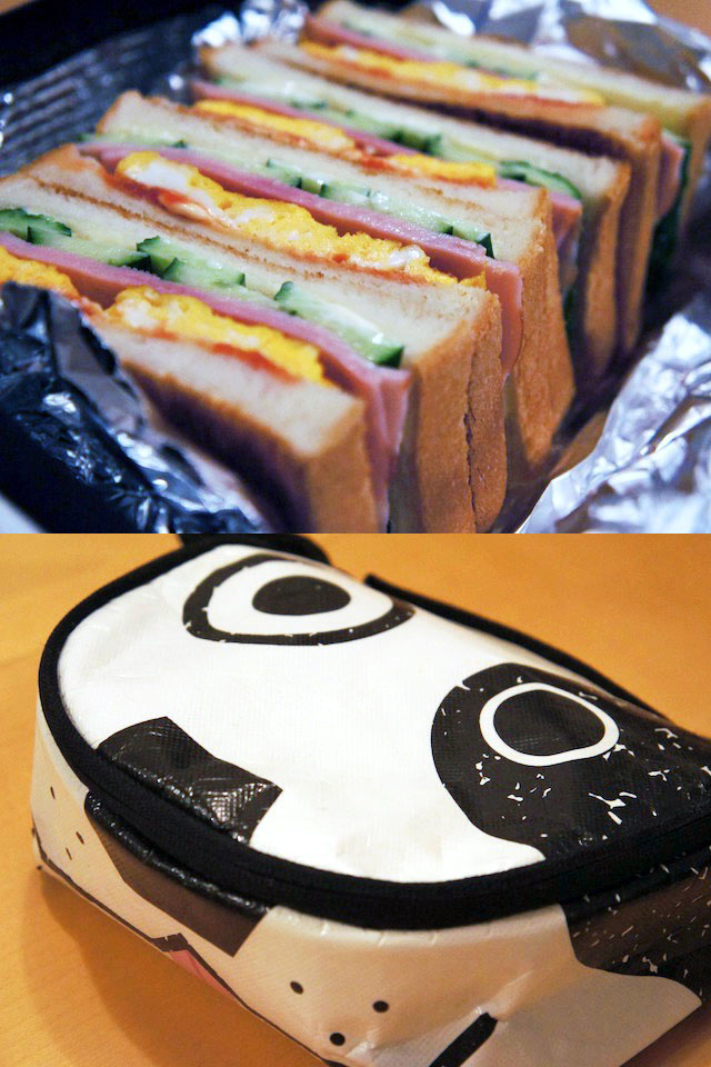 今日はひとつ、ピクニック気分で朝をたべましょうか…、と、アルミホイルで軽く包んでランチバッグにいれてみた。