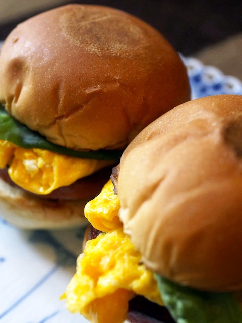 アメリカンブレックファストをパンで挟んだようなサンドイッチにしてやろう。