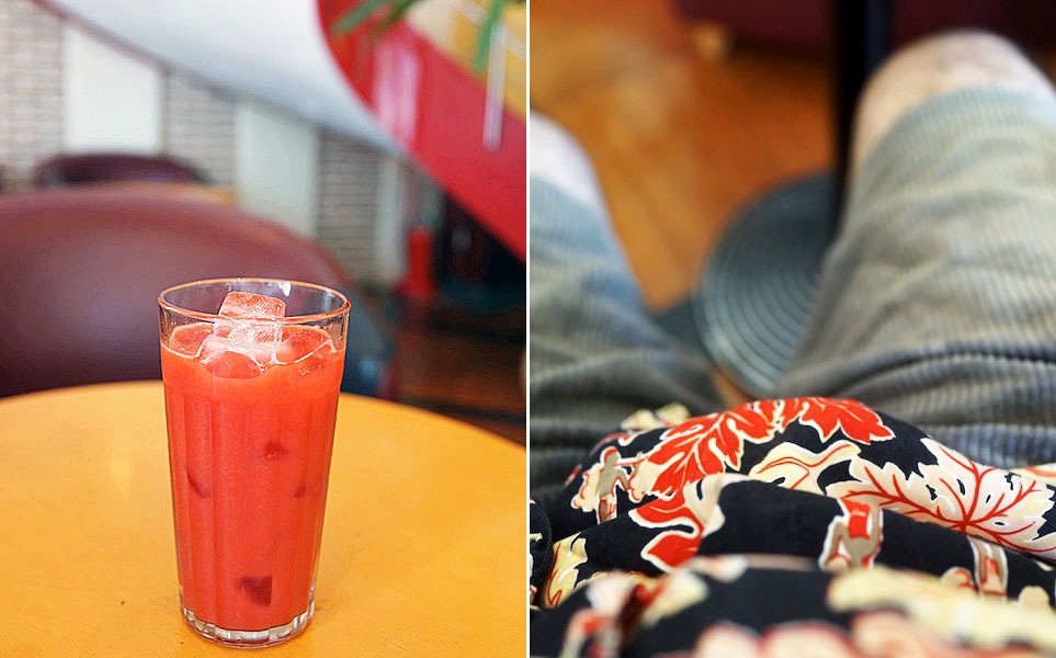 エクセルシオールカフェのブラッドオレンジジュースをグビリと飲んで、下町へ!