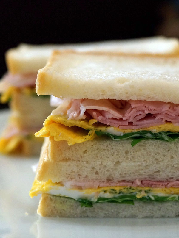 ディルと一緒に焼き上げた薄焼き卵にロースハムをシュレッドタイプにしてもらったもの。ケチャッププチュリで蓋してザックリ切って出来上がり。