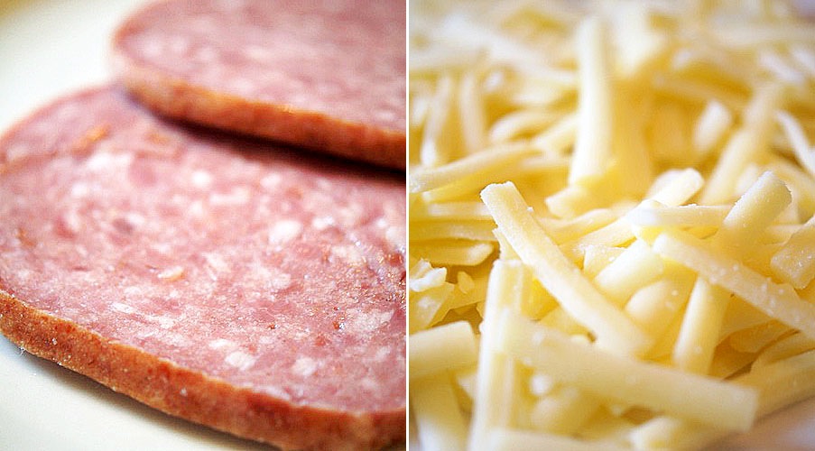 2つに開いて内側をこんがり焼いたら、その半分にチーズをのせて再び焼いて溶かして焦がす。