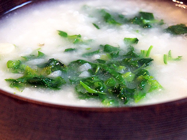 まるでお米のポタージュみたいになったところで、軽茹でをして刻んだ七草放りこみ、お椀に移してハフハフします。