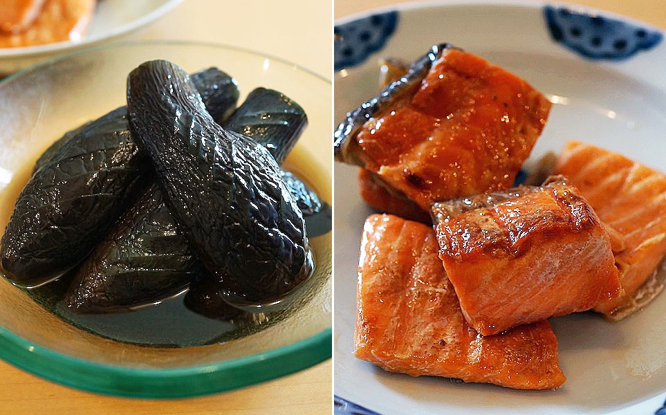 それから昨日の夜に仕込んでやすませといた茄子の煮物。