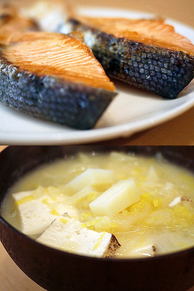 甘塩の色鮮やかな切り身をみつけて、それをグリラーでコンガリ焼いた。