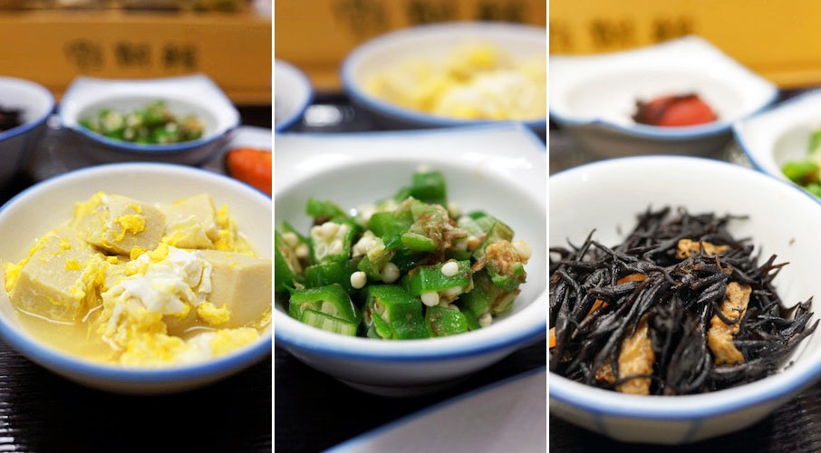 ズラッと並ぶ料理の数々、手前におでん、惣菜類からはじまって、奥に向かっていくに従いどんどん重たい料理になってく…、目に入るのはそのお惣菜。