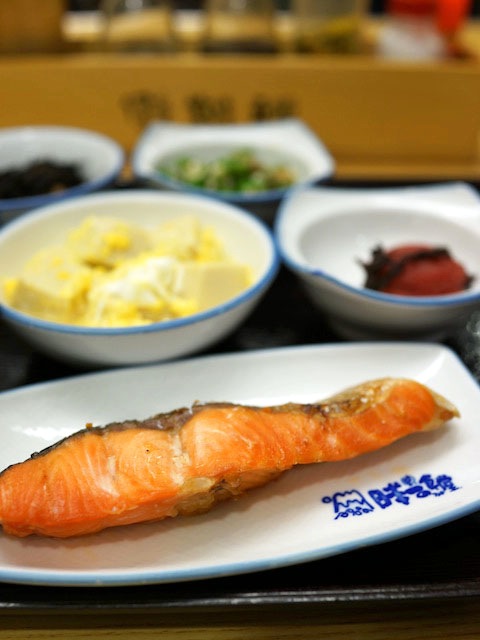 鮭の塩焼きっていうとなんだか朝のおかずのように感じる…、けれどこうして夜に食べるのも悪くはないなと思って食べる。
