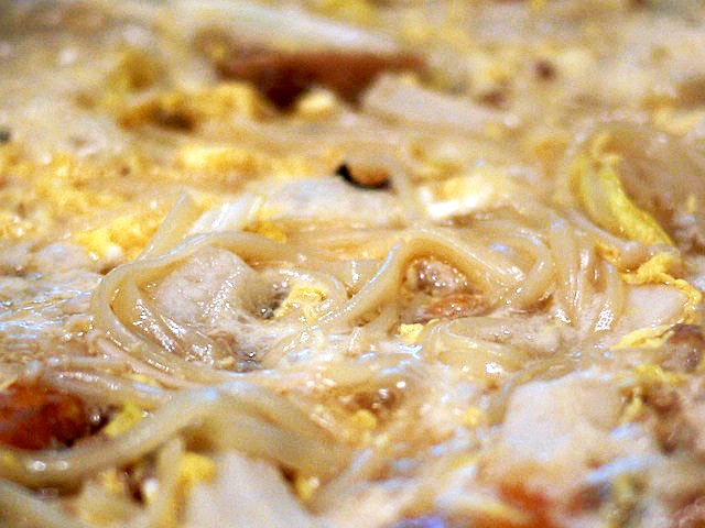 玉子を溶いて、沸騰をする汁の上から投入しチリチリさせて火を止める。