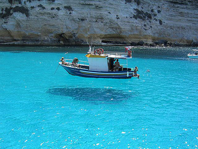 海の透明度が高く、しかも海底がキレイで空が映り込んで写るんだという。
