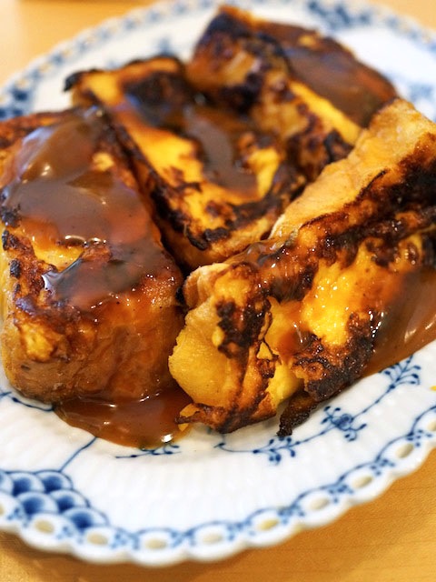 パンの本体部分はディップ液につけフレンチトーストに焼いてみた。