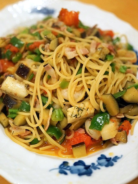 玉ねぎ、茄子にピーマン、トマト。