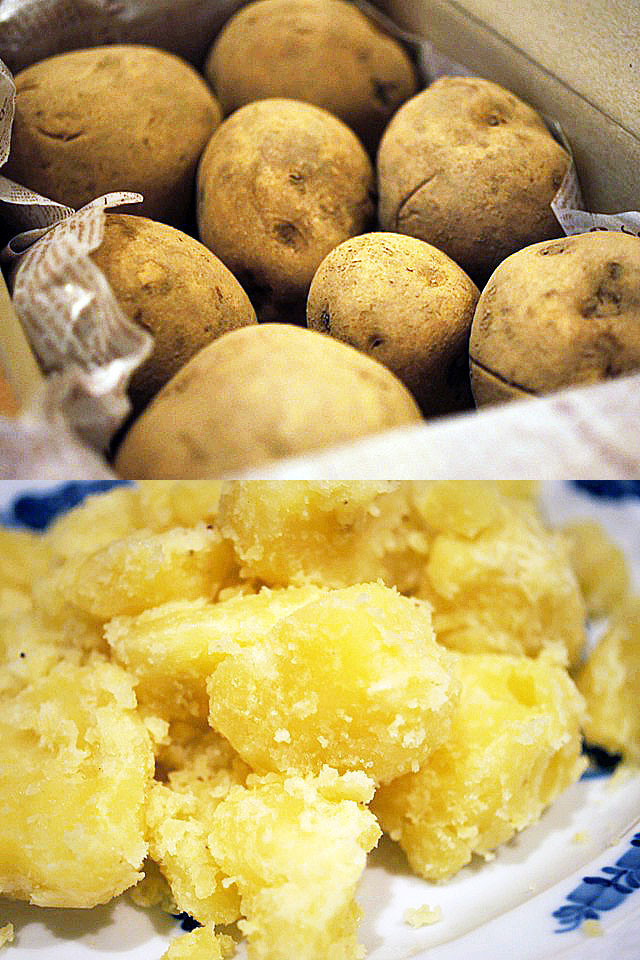 北海道の「冬越しキタアカリ」というモノで、一冬越してうま味をギッシリ凝縮させた貴重なお芋。