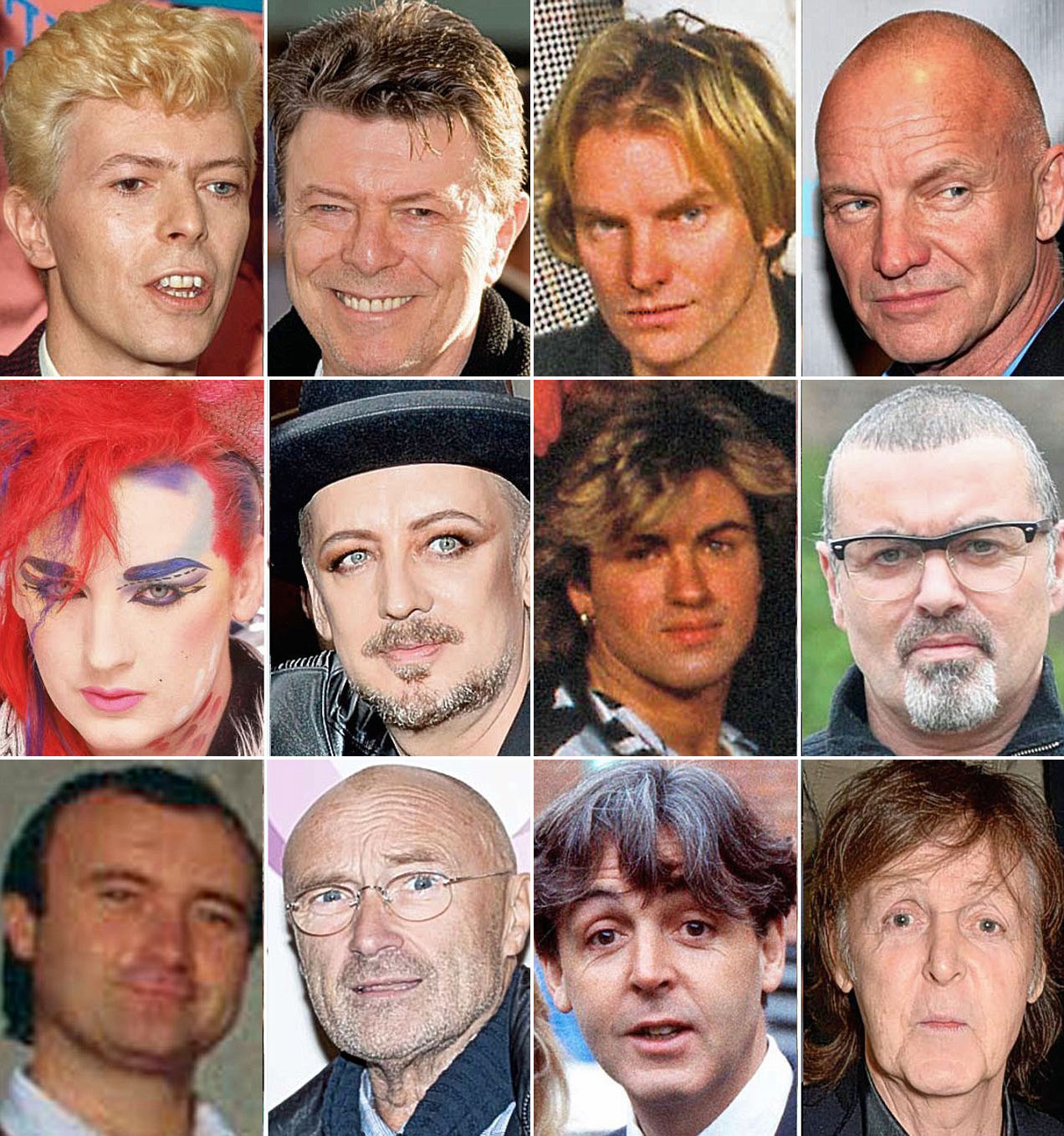 一番上の段の左がデビッド・ボウイ、右がスティング。