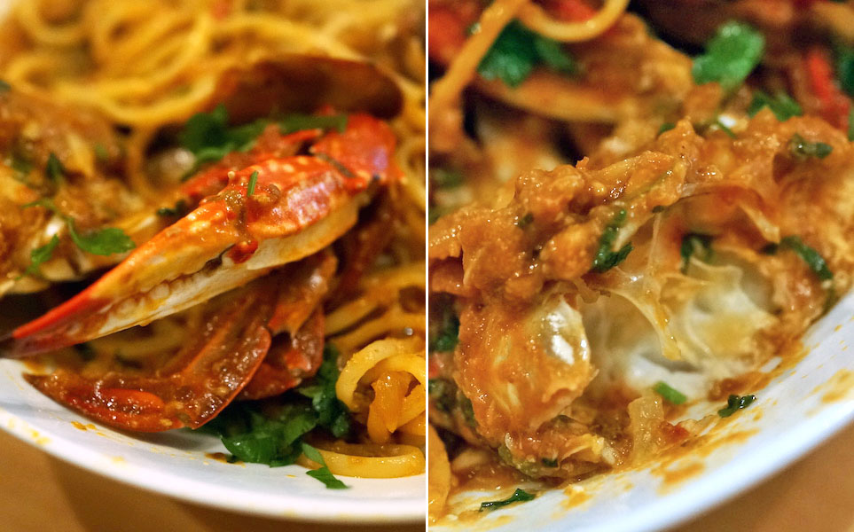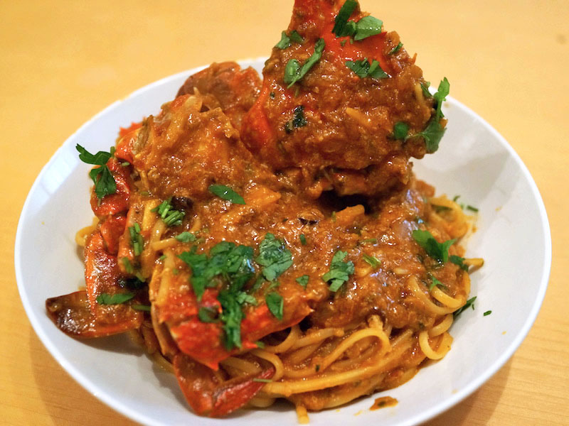 トマトの酸味に炒め玉葱の甘み、そこにカニの旨みがまじりあい、イタリアンパセリの香りがキリッとすべてをひきしめる。