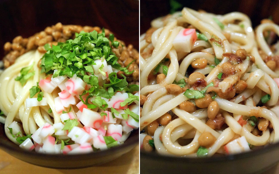 タレを納豆がからめとり、麺の表面にしっかりからんで口の中へとなだれこむ。ツルツル、スベスベ。なんたるおいしさ。オキニイリ。
