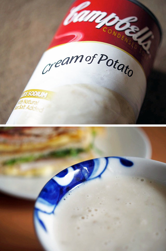買い置きのキャンベルのクラムチャウダーがあったはず。