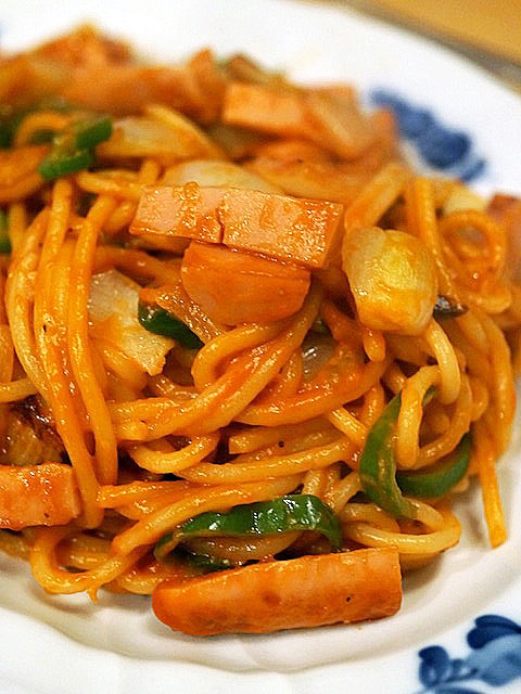 麺がところどころ焦げて香りがおいしく、ネットリぽってり、トロミがついたケチャップが全てに絡んで口の中へとやってくる。