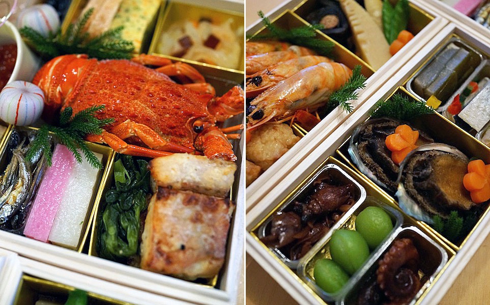 凍ってやってきたおせち料理で、冷蔵庫の中で一日かけて解凍をした。