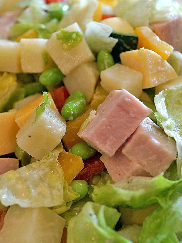 ハムは分厚いロースハム、チーズはチェダーで、野菜にはないムッチリとした食感と、塩味、うま味に風味をもらう。