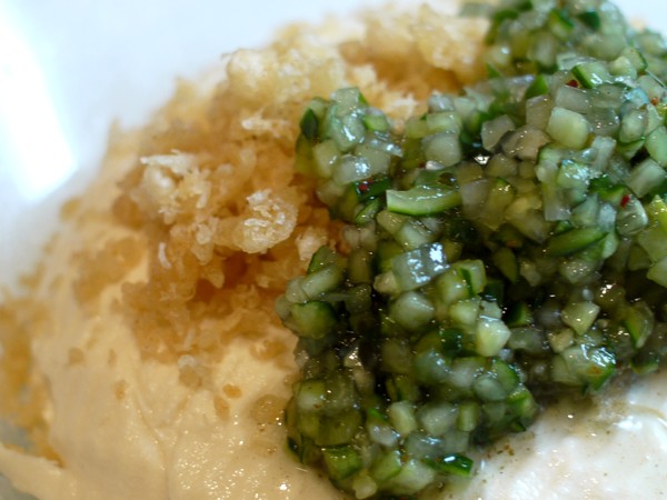 一緒に揚げ玉もあわせてのっけて、スプーンですくって一緒に食べる。