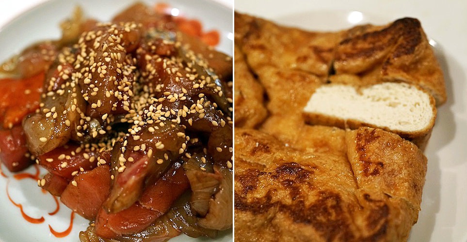 大きな厚揚げをフライパンで空焼きすると、自分の油で再び揚げたて状態を取り戻していくのがなんともオモシロく、生姜をすってタップリのせてプルンと味わう。