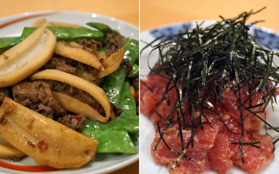 最近オキニイリのマグロの漬けの練り胡麻和えに、今日は切り海苔をたっぷり散らす…、同じ料理もあしらいを変えるだけで味の印象が違って感じる。