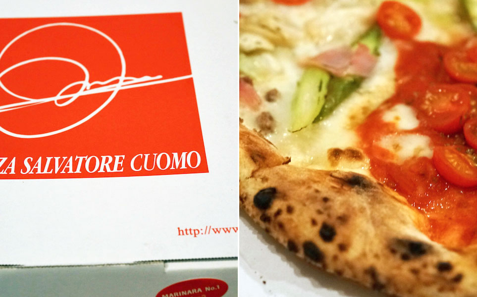 サルバトーレのハーフ・ハーフ。トマトソースを使ったマリナラ。甘くてやわらかい春キャベツを使ったプリマベーラっていうのを選んで作ってもらったの。