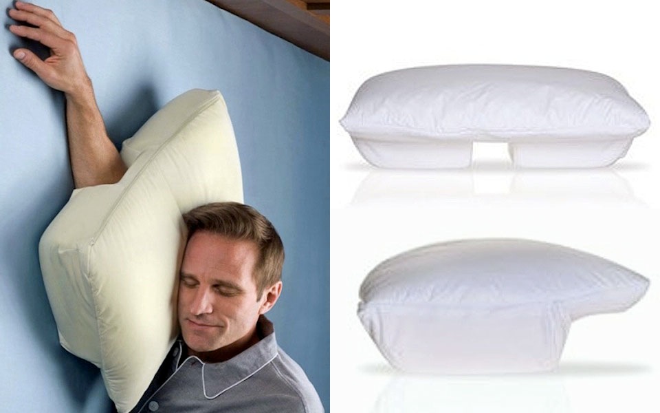 底の部分に溝ができてて、そこに腕を通すようになっている…、頭の下に腕を伸ばすとよく眠れる人のための「「Better Sleep Pillow」って商品。