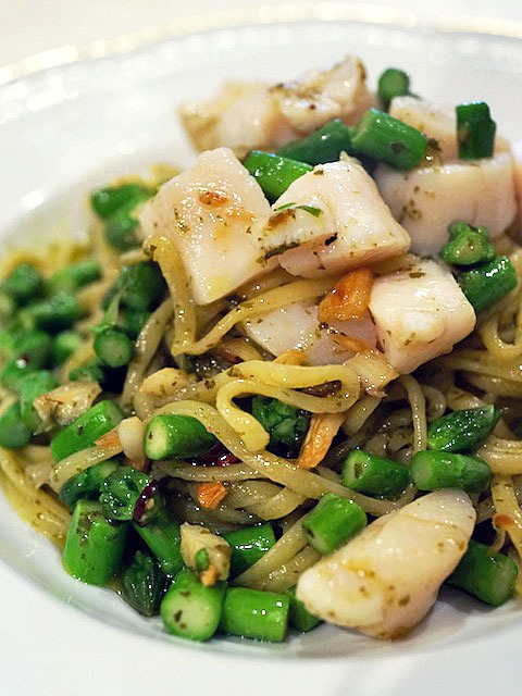 何よりジェノべぜソースの香りやホタテのうま味を麺がしっかり吸い込んでいる…、生のパスタの良いとこはこういうところ。