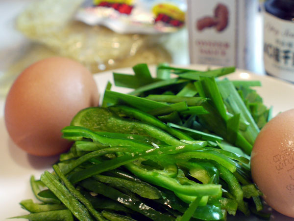 ニラの風味とピーマンの緑の香りとやさしい辛味。