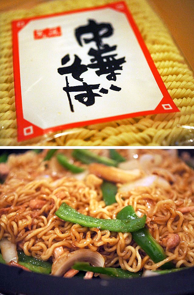 カップで仕上げるペヤングソース焼きそばのとても上等でおいしいバージョン、って感じがなんだかたのしくおいしい…、土曜の夜のオゴチソウ。