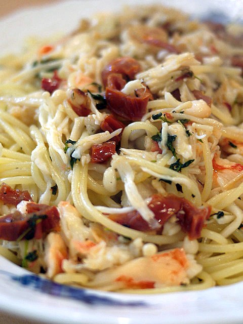 オリーブオイルを仕上げに麺にドレスして、お皿に盛って出来上がり。