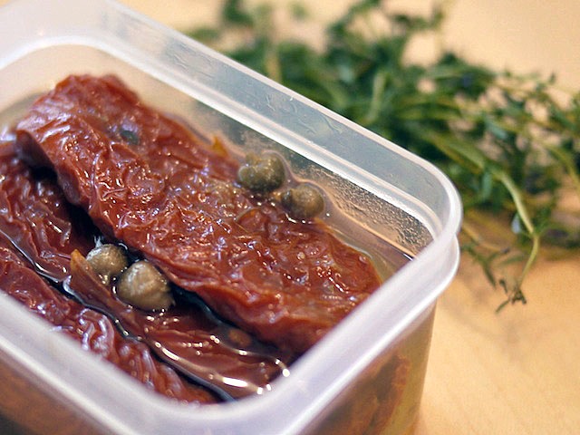 冷蔵庫の中に寝かせてあったドライトマトのオイル漬け。