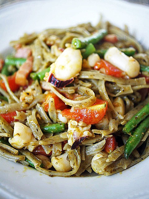バジルやハーブを練りこんだタリアテッレを先日購入。