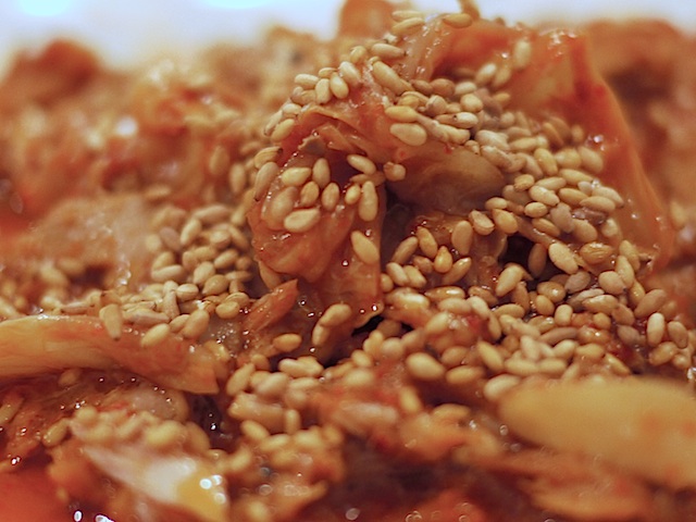 ジュワッと脂がしみだして、シャキシャキっとした白菜キムチを包み込み、ビリッと最後に鋭い辛味を残して消える。