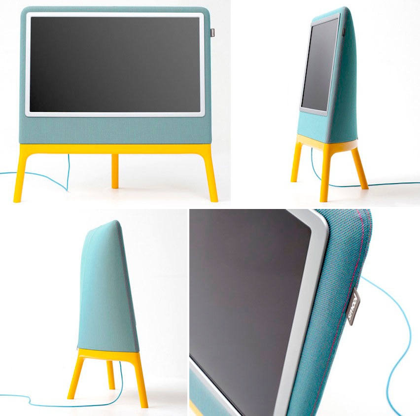 布でくるまれたテレビというコンセプト…、布製のラベルもついてて色違いのステッチもありとまるでトートバッグみたいな感じのカジュアルさ。