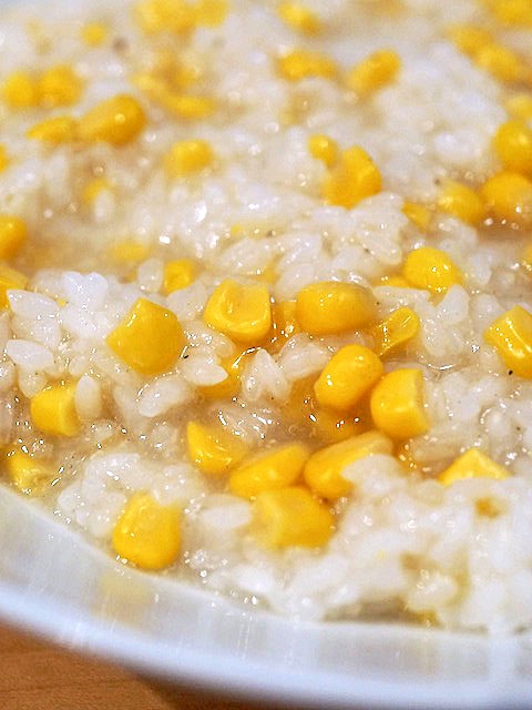 胡椒の風味がフワーッと口に広がって、コーンの甘味とポッテリとしたお米がお腹をあったかにする…、たった少しのお米がこんな料理に変わる、なんてステキと思う夜。