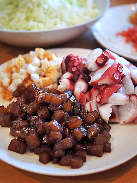 たこ焼きの下拵え、あれこれ細かく刻むので、案外大変なんですもの(笑)
