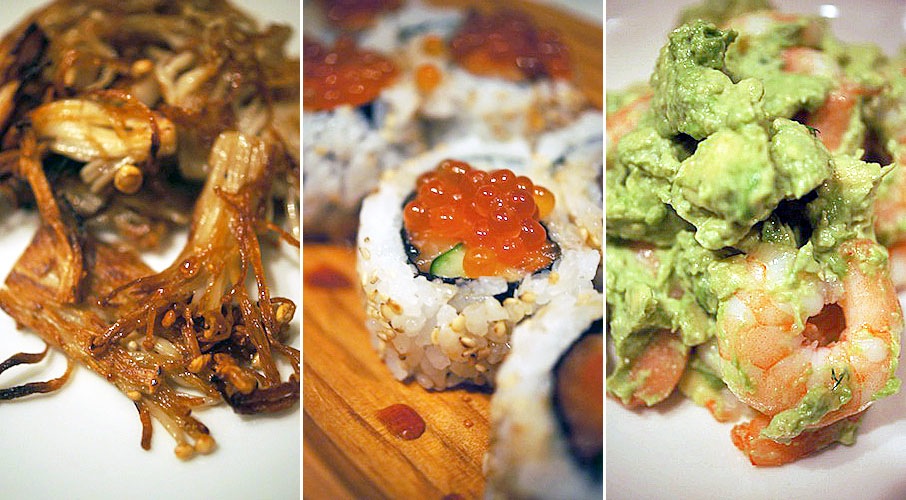 いくらを散らしたサーモンロールは某デパ地下で買ってきたもの…、ロール寿司っていうのは刺身のようであり、寿司のようでありおしゃべり促す便利な料理。