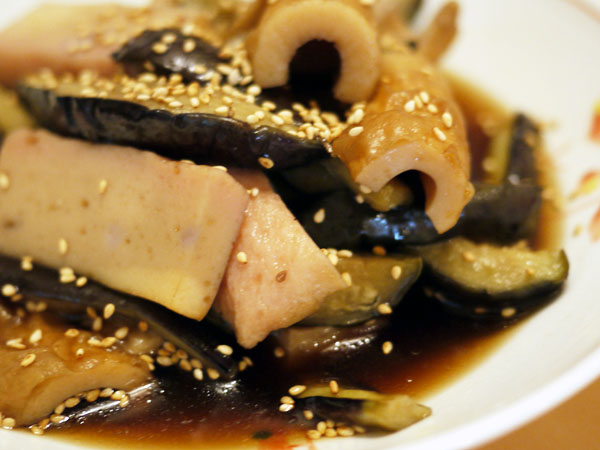 まずは茄子と練り物の甘辛煮。