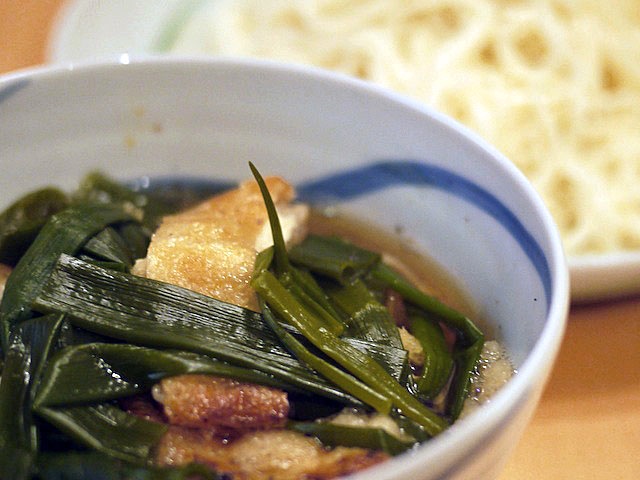 冷や麦茹でて、水でシャキッと冷やしてしめて、それを熱々のタレにトプッと浸けて食べるというモノで、これがおいしい。