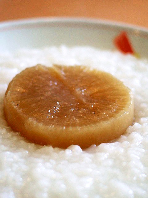 口の中で大根が、クチャっとつぶれてジュワーッと煮汁を吐き出し、お粥の味をひきたてる。