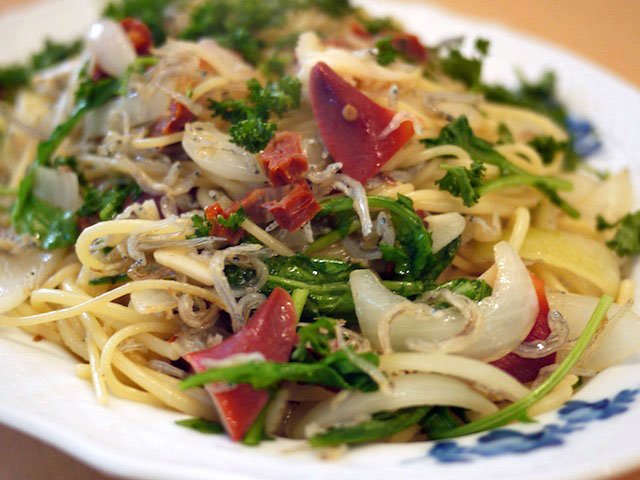 それにパセリを刻んでいれて、マヨネーズと芥子で練り練りしたのをタップリ、のっけるようにして食べる。