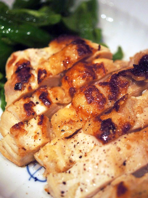 それから鶏のむな肉を開いて塩麹をまぶしてしばらく寝かせて、焼いてみた。